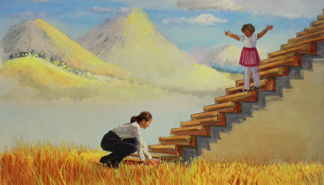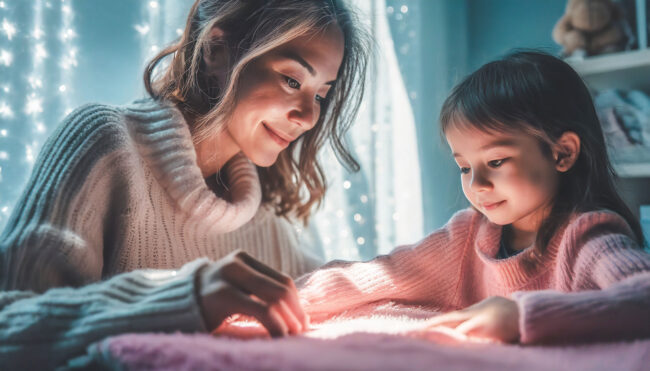 Vovó vou esconder essa pedrinha rosa e você tem que achar, tá? Não olha! Tá bom, Alice! Já posso ir? Só vai me dando dicas, tá? Tá frio ou tá quente? Nossa, muito frio, vovó, quase gelo. Puts, então vou pro outro lado… E aqui? Aí tá ficando mais quente. Muuiito mais quente! Cuidado, vovó,…